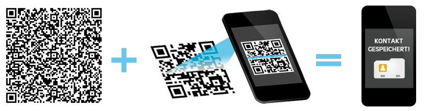 Den QR-Code können Sie mit der passenden App aus dem jeweiligen Store einfach scannen und so unsere Daten für unterwegs speichern.